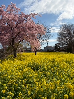 横浜市営地下鉄グリーンラインの川和町駅前には菜の花畑が広がっています。